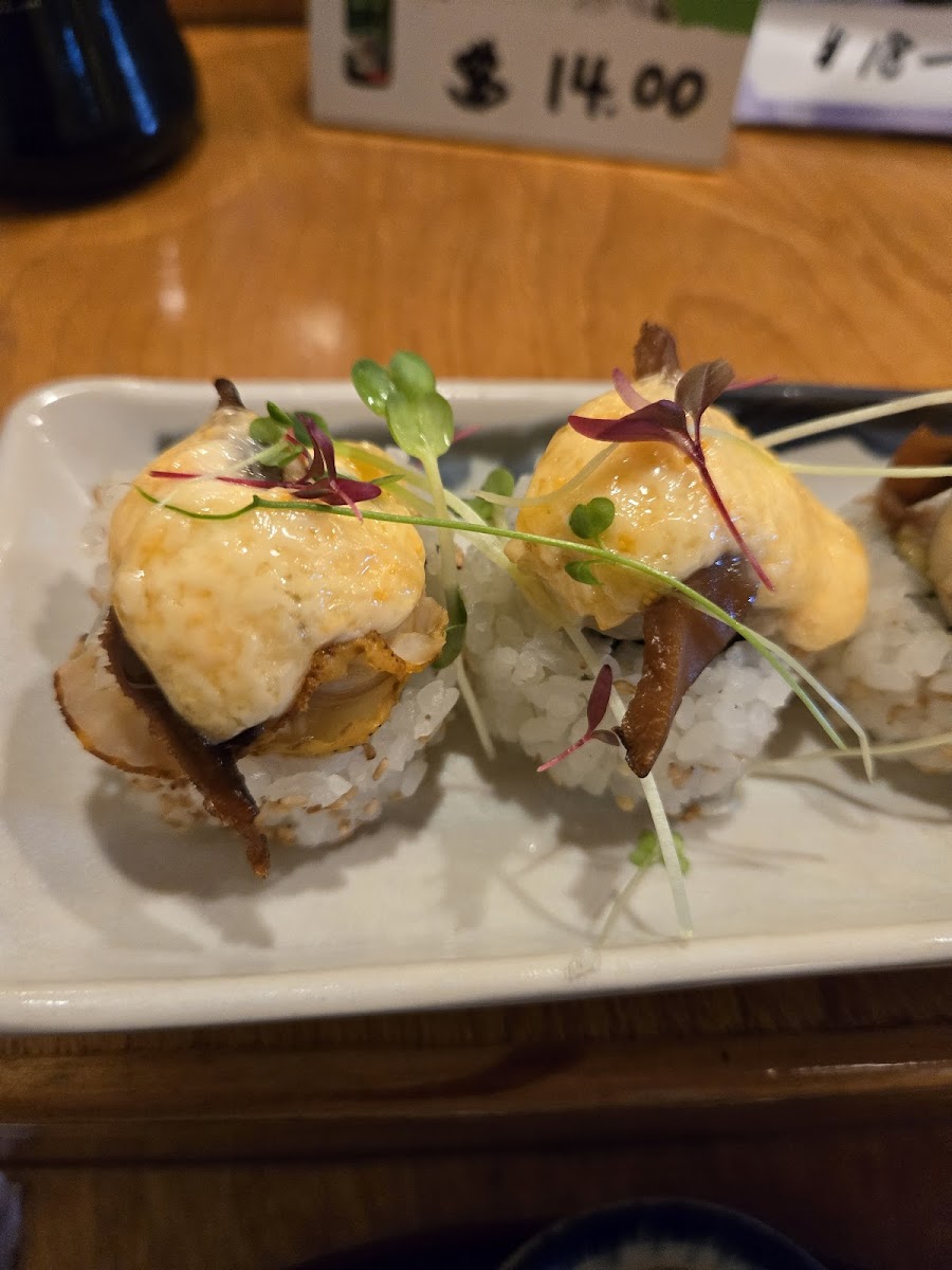 They were really busy and so we got sat at the sushi bar which was ended up being a really good food and eating experience. The chefs were creating some really good Lookin rolls. The service and the food were really good and enjoyable. We loved that the rolls didn’t feel like commercial and standard rolls. Highly recommended this place for sure
