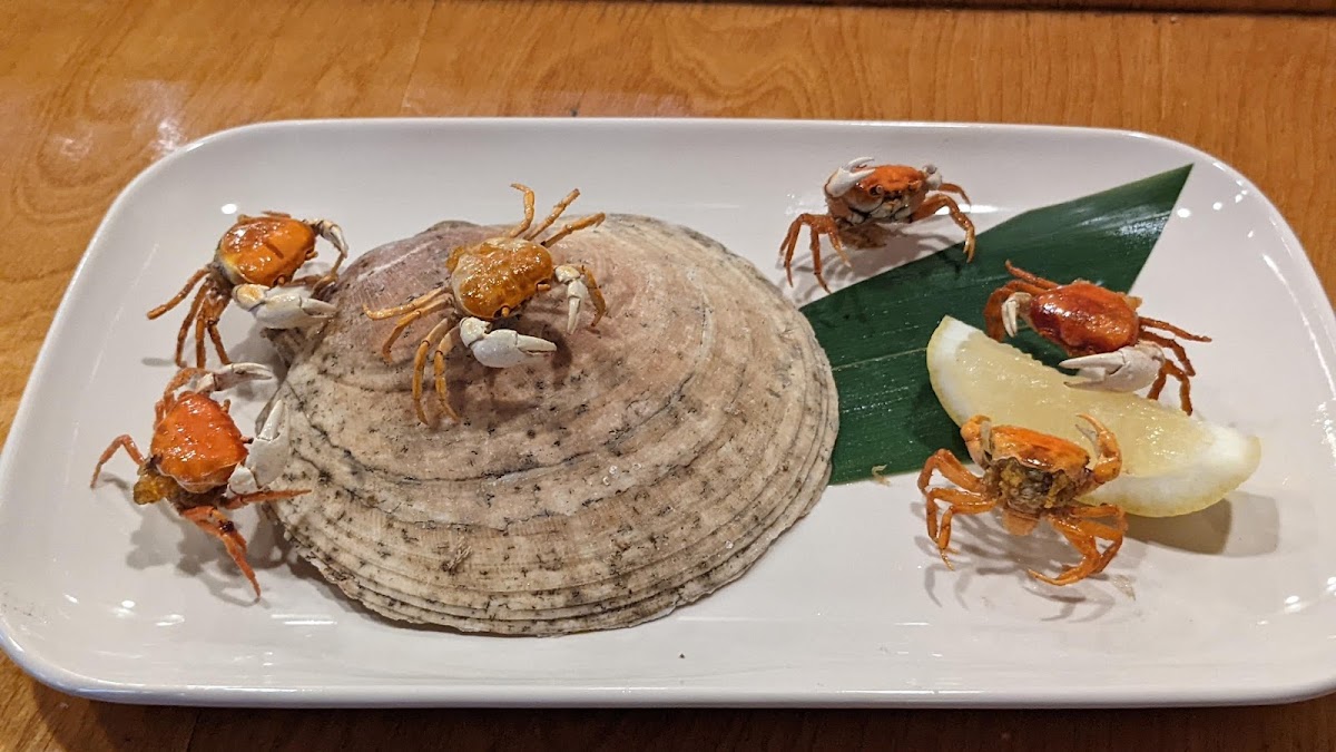................................US$19.00Inside: deep-fried soft shell crab, imitation crab top and cucumber bonito flake sauce: ponzu